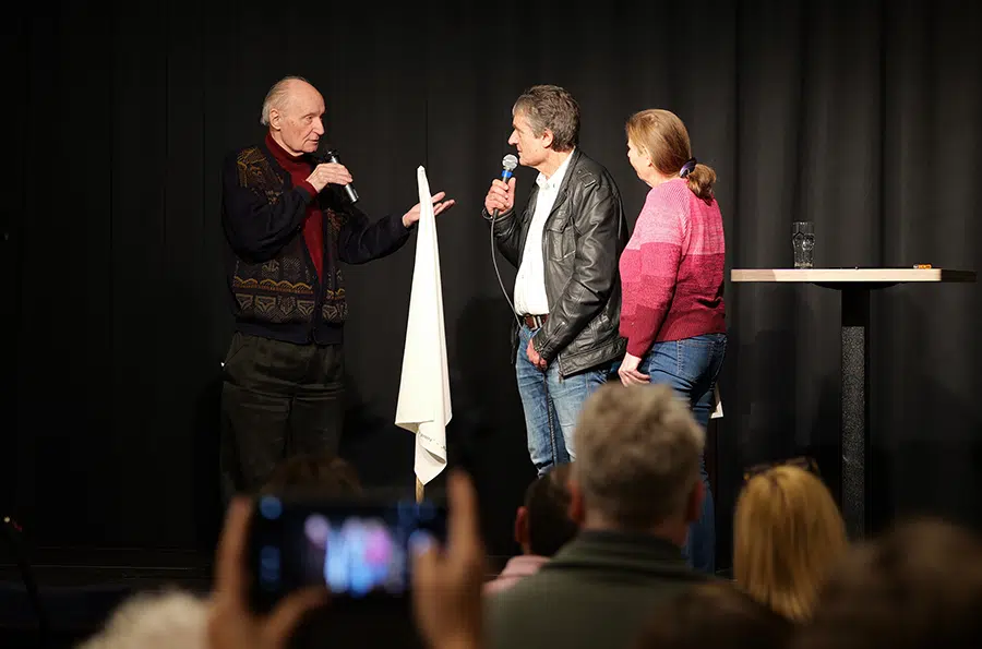 Erst im Nachgang des Abends wurde sichtbar, dass die Verweigerung eines Fotografen nicht einfach ein technischer Defekt oder ein Missverständnis war. Stattdessen wirke es auf Johannes Heibel „initiiert“. Die Leitung des Kulturhauses hatte die Einladung Drewermanns durch Heibel zunächst abgelehnt. Eva Pucher-Palmer und Jörg Gaisbauer, die Köpfe der Bürgerinitiative, zeigten sich ebenso verwundert über die Reaktionen. Sie bedauerten zudem, die deutlich zur Schau getragene Mißbilligung der Veranstaltung und kommentierten, „Wir haben das Thema Frieden zum Mittelpunkt dieses Abends gemacht. Drewermann spricht sich für Verständigung und gewaltfreie Lösung von Konflikten aus. Wir verstehen nicht, warum man sich von dieser Haltung distanzieren müsse.“ Die Ablehnung war, so Pucher-Palmer auf meine Anfrage hin, bedauerlicherweise in der gesamten Betreuung der Veranstaltung erkennbar. Zugleich mahnte Pucher-Palmer an, die auch als Stadträtin einer Wählergruppe vertreten ist, „so etwas darf nicht noch einmal vorkommen“. Der Bürgermeister Wolfgang Letschert äusserte sich auf meine Nachfrage nicht, und auch der Kulturhausleiter hüllte sich in Schweigen. Bekannt wurde jedoch, der Trägerverein des Hauses habe inzwischen einen neuen Vorstand, der künftig von zwei regionalen Ratsvorstehern wahrgenommen werde – ein Schritt, den Pucher-Palmer für dringend notwendig hält. Und sie erwähnte noch etwas, beinahe beiläufig. Das nächste Thema der Bürgerinitiative heiße „Demokratie leben!“. Auch dort gebe es „Transparenzbedarf in der Verbandsgemeinde. In der Summe entsteht ein stilles, aber deutliches Bild. Wie sehr selbst kleine Kulturhäuser, eine Funktion, die die „Zweite Heimat“ neben der Jugendbetreuung in Höhr-Grenzhausen eben auch erfüllen soll, inzwischen zu Schauplätzen politischer Empfindlichkeiten werden und wie viel bürgerschaftlicher Mut nötig ist, damit ein Abend wie dieser überhaupt stattfinden kann.